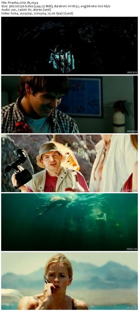 Piranha (2010) | English | 01:24:52 | 1280 x 720 | 25fps | MKV(H264) | MP3 - 128kbps | 694 MB