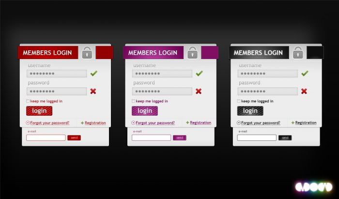 These 3 Login/Signup forms are designed in Adobe Photoshop CS4 , the layers are very organized, so you can easily change the styles and gradient colors, they can be very usable in social sites, wordpress themes, applications. Design is very stylish sharp and clean.