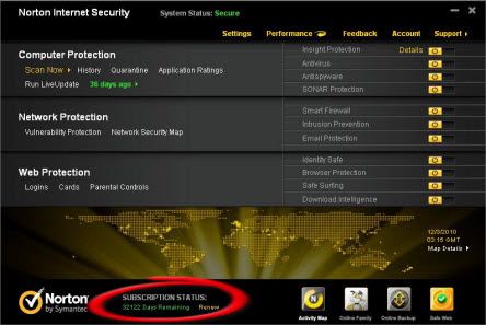 06. Norton 2011 Internet Security will shut down & restart With 32122 Days Remaining Subscription Status
